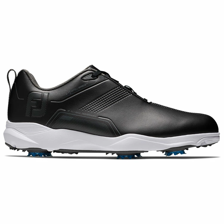 | FootJoy eComfort 57700 Golf Shoes Fully Waterproof With All Round Performance Introducing the all new eComfort golf shoe from FootJoy. An easy care comfortable shoe with exceptional value for money. With an EVA midsole design that provides the necessary underfoot cushioning whilst also offering the required support and stability in a golf shoe. Designed for grip and traction, a 6-cleated outsole is enhanced with additional gripper lugs ensuring you get ample underfoot traction. The synthetic uppers offer waterproof protection and are easy to clean. The eComfort golf shoe is a fantastic performance shoe for the golfer seeking premium brand stylish with great value for money. |