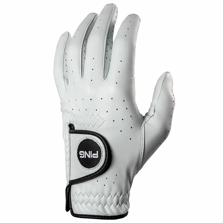 | Ping Tour Golf Glove Premium Leather For The Ultimate In Feel The Tour Glove from Ping is great for any golfer who seeks top-performance every round. Made from a quality cabretta leather with sensor cool technology to wick moisture and allow you to focus on your game. – Pre-curved fingers engineered for a natural fit & feel. – Solite Premium Cabretta leather with Micro-Pur technology is engineered for the ultimate in feel, softness and performance. – Finger vents and perforations optimize breathability. – Perforated leather Velcro® closure maximizes ventilation. – Wristband features moisture-wicking SensorCool Technology. |