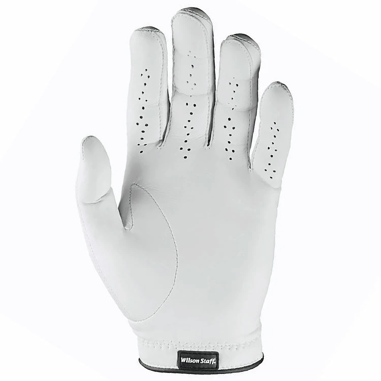 | Wilson Conform Golf Glove Blending Comfort With Ventilating Mesh Design The new Wilson Conform Glove has an even better fit and feel than its predecessor. The premium Abyssinian cabretta leather has 3M Scotchguard protection for softness round after round. The Ultramate Velcro gives it a tighter closure and hold throughout play. Anti-microbial performance mesh dissipates heat and moisture. – Premium Abyssinian cabretta leather – Reversed thumb seam for extra feel and smoothness in the palm – Cuff pull tab for extra durability – Terry cloth wrist band for improved comfort and feel – Soft cabretta leather patch for palm and thumb |